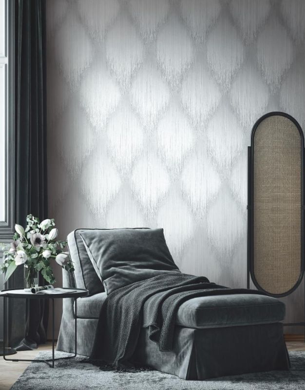 Dijamantska elegancija – Geometrijska preciznost i glamur se susreću u motivu dijamantske mreže. Tapeta podseća na sjajne šljokice i daje prostoru izražajnu dubinu i sofisticiranu završnicu.