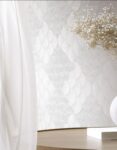 Dijamantska elegancija – Geometrijska preciznost i glamur se susreću u motivu dijamantske mreže. Tapeta podseća na sjajne šljokice i daje prostoru izražajnu dubinu i sofisticiranu završnicu.