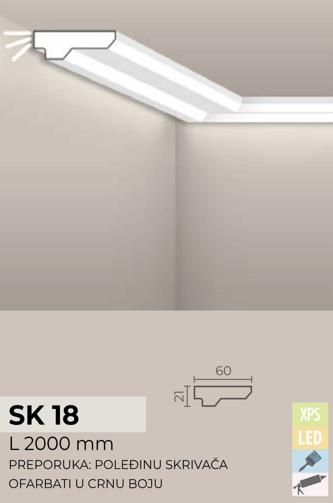 Postavljanjem SKRIVAČA RASVETE promenićete atmosferu celokupnog prostora. Ove lajsne se mogu koristiti kao skrivači svetla i/ili kao ugaone lajsne. Oplemenjuju svaki enterijer, inovativni su i vrlo izdržljivi. Dodaju notu elegancije, praktičnosti i estetskog zadovoljstva prostoriji.