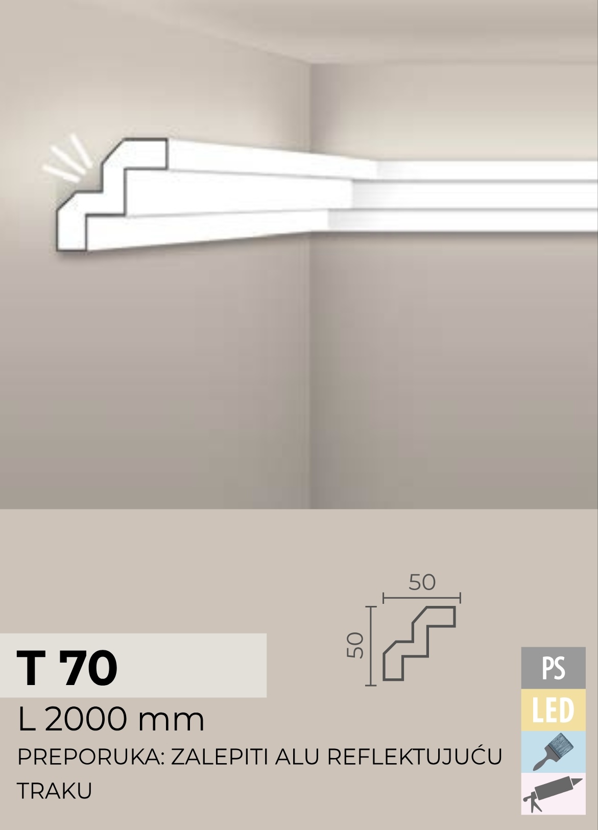 Estetska primena: prikriva prelaze između plafona i zida, ističe dekorativne panele ili maskira spojeve.