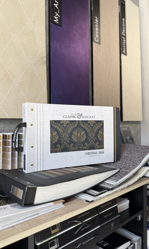 Svaka tapeta je i u katalogu tako da odmah možete videti izgled u prostoru, uz konsultacije oko kombinovanja sa tehnikama i dekorima.